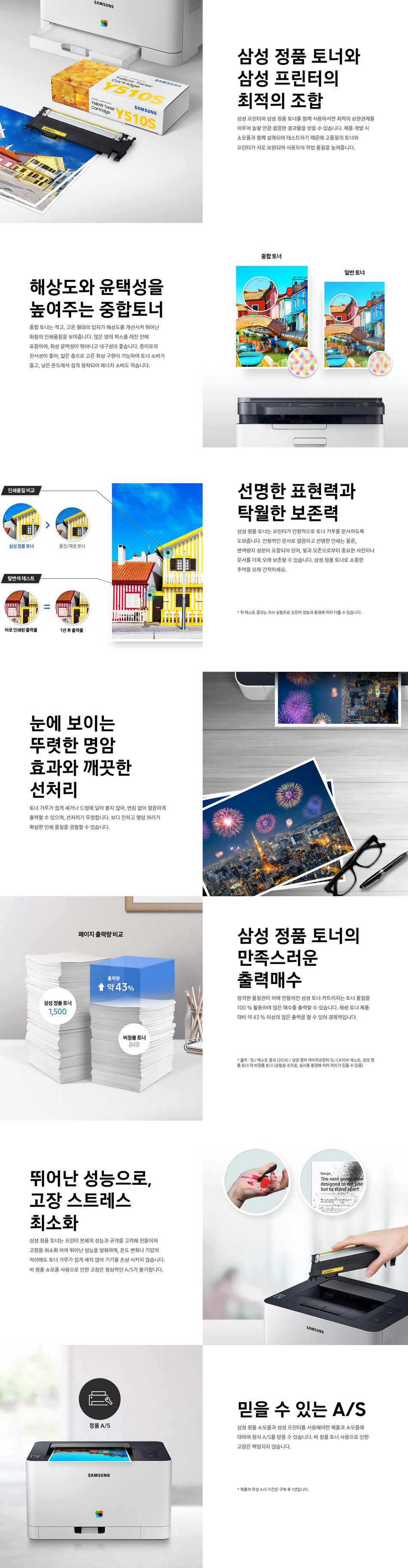 삼성용 / 정품 / 토너 / 노랑 / 표준용량 / 인쇄 매수: 약 1,000매
